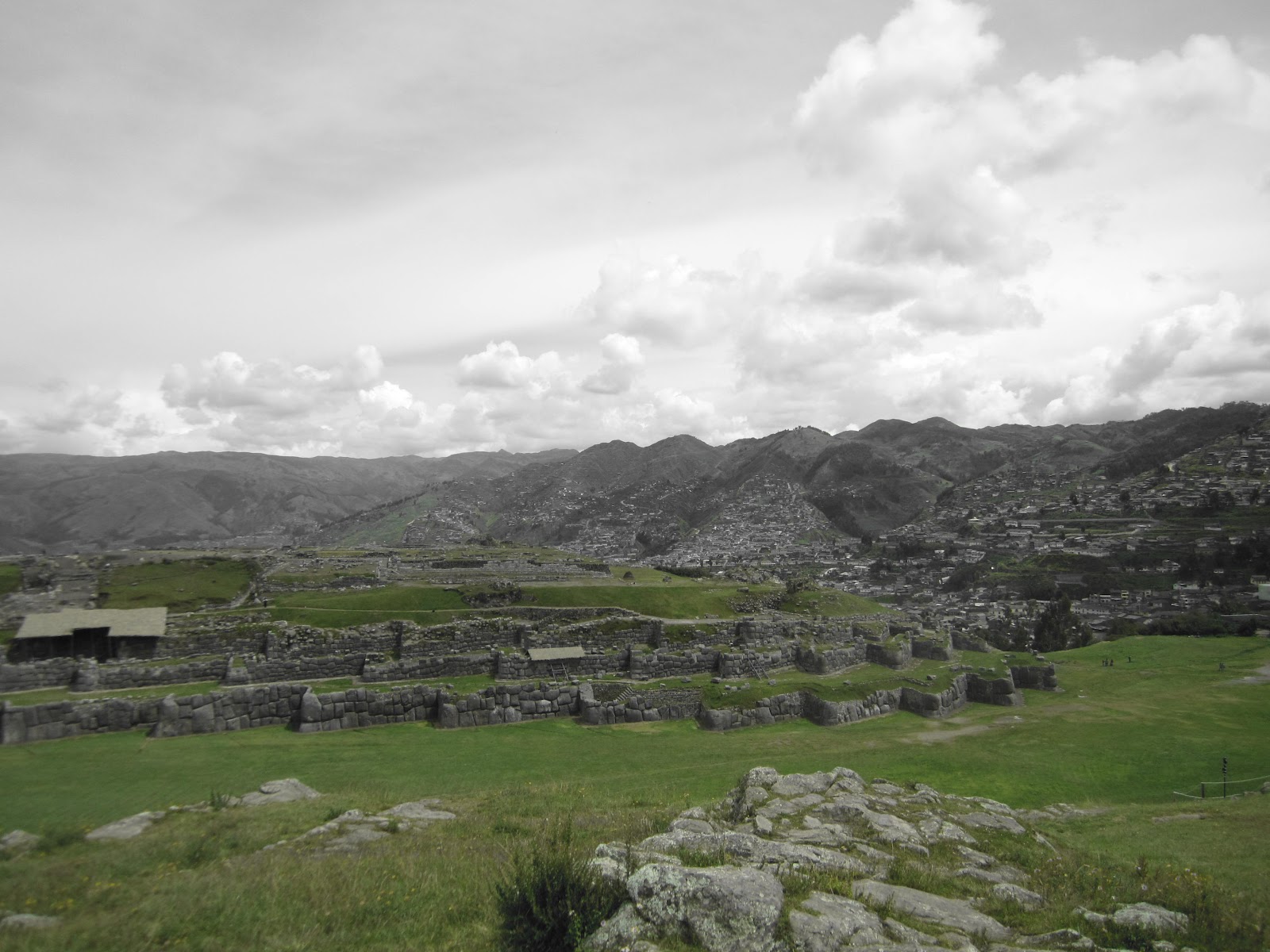 Walls of the Inca fort Sacsaywaman, with Cusco in the background